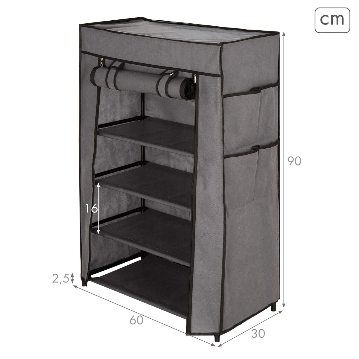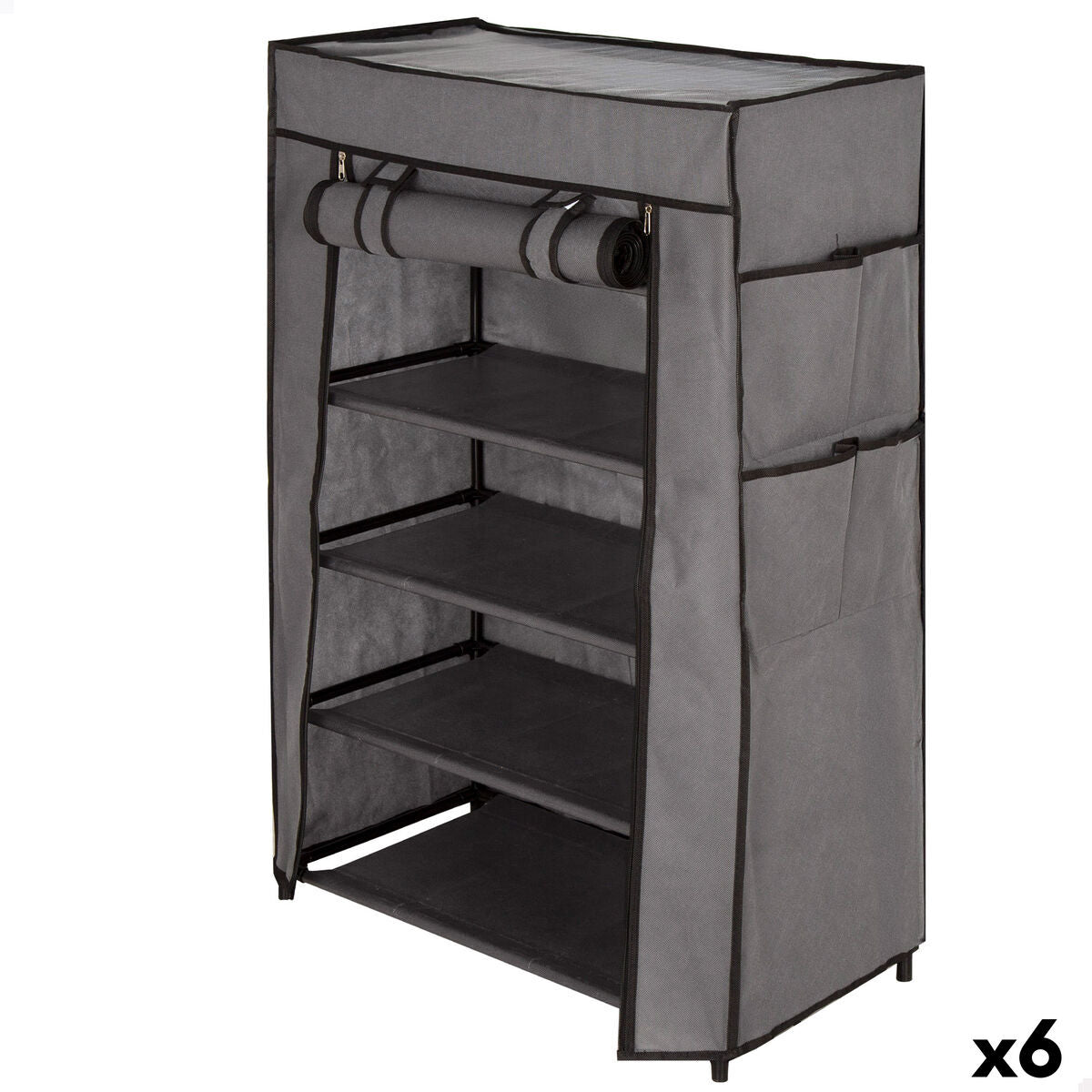 Scarpiera Max Home Nero Grigio Metallo Tessile 60 X 90 X 30 CM (6 Unità)
