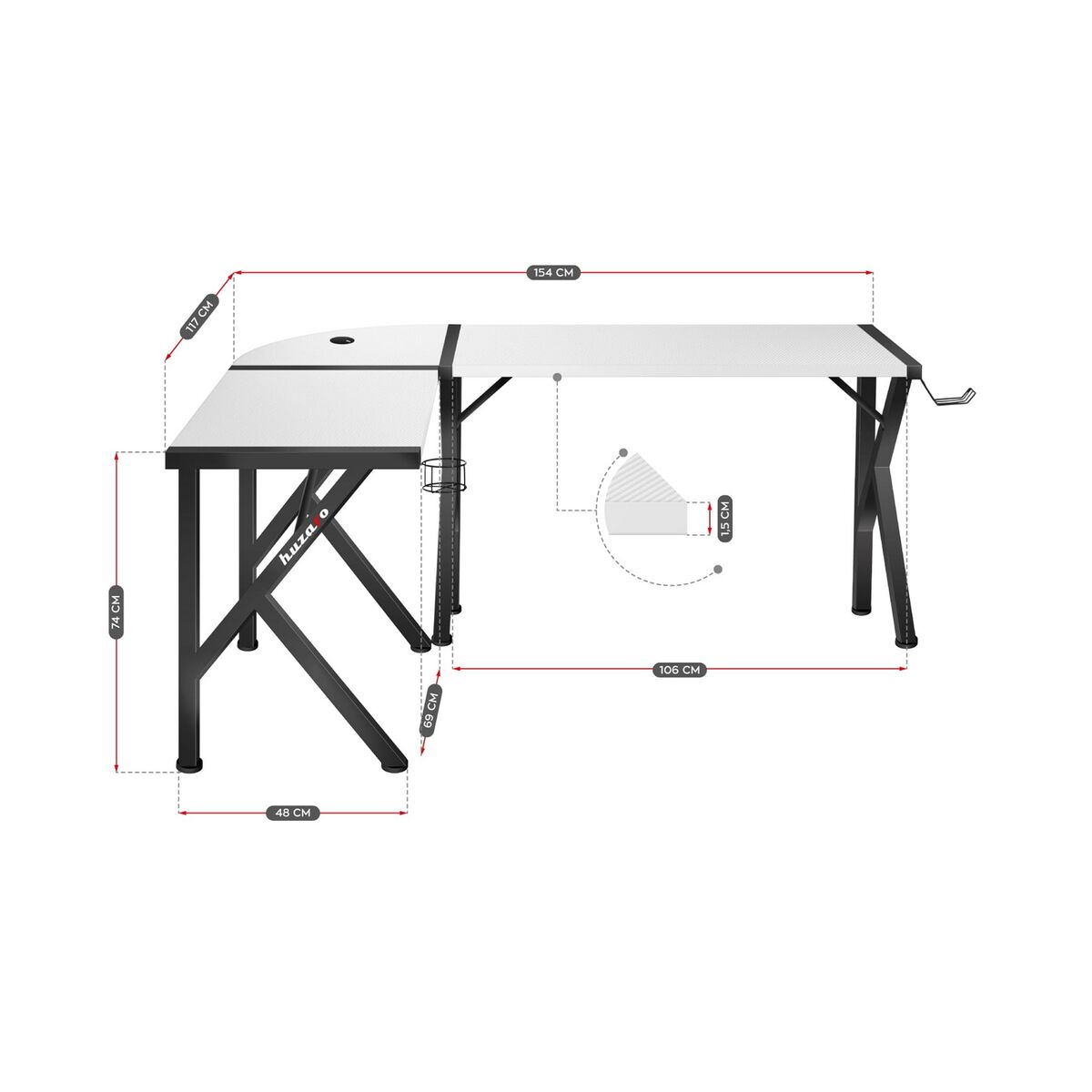Desk Huzaro Hero 6.3 White Black Steel Carbon fibre 154 x 74 x 117 cm