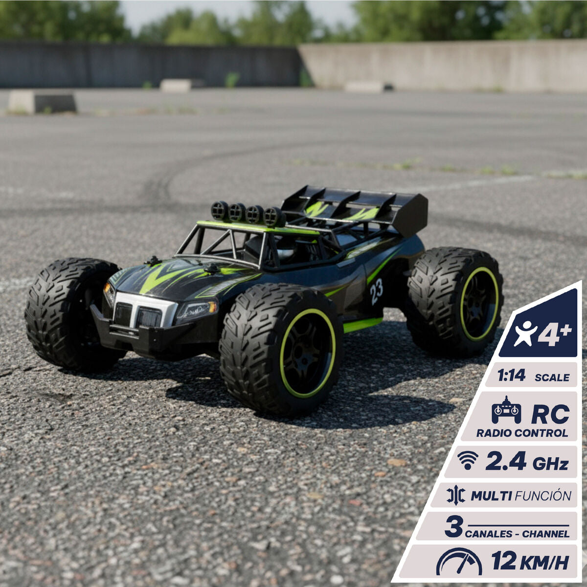 ¡Prepárate para sentir la velocidad con el coche teledirigido Speed & Go! Diseñado a escala 1:14 y ruedas todoterreno, este coche es ideal para conquistar cualquier terreno. Controla cada movimiento con su mando de 2.4 GHz, ergonómico y de estilo pistola, que permite una respuesta rápida y precisa en 6 direcciones, alcanzando velocidades de hasta 12 km/h y una autonomía aproximada de 20 minutos. El mando funciona con 2 pilas AA (no incluidas) y el coche con batería recargable (cable incluido), asegurando largas horas de diversión. Recomendado para niños a partir de 4 años, este coche es perfecto para desarrollar la habilidad manual, la orientación espacial y la imaginación.