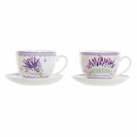 Tazza con Piatto DKD Home Decor Bianco Verde Lilla Porcellana 220 ml (2 Unità)