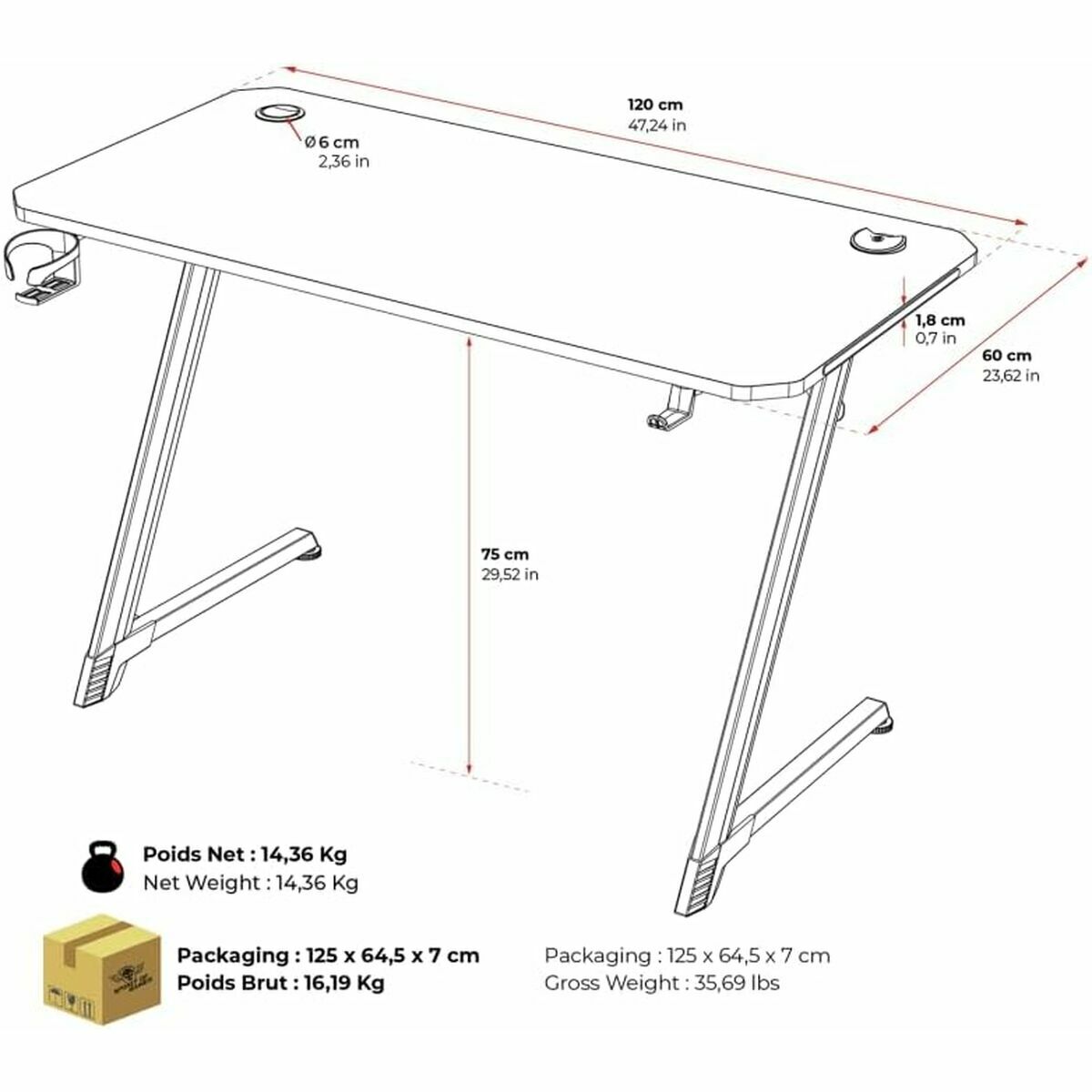 Scrivania Gaming Spirit of Gamer Headquarter 250 Nero