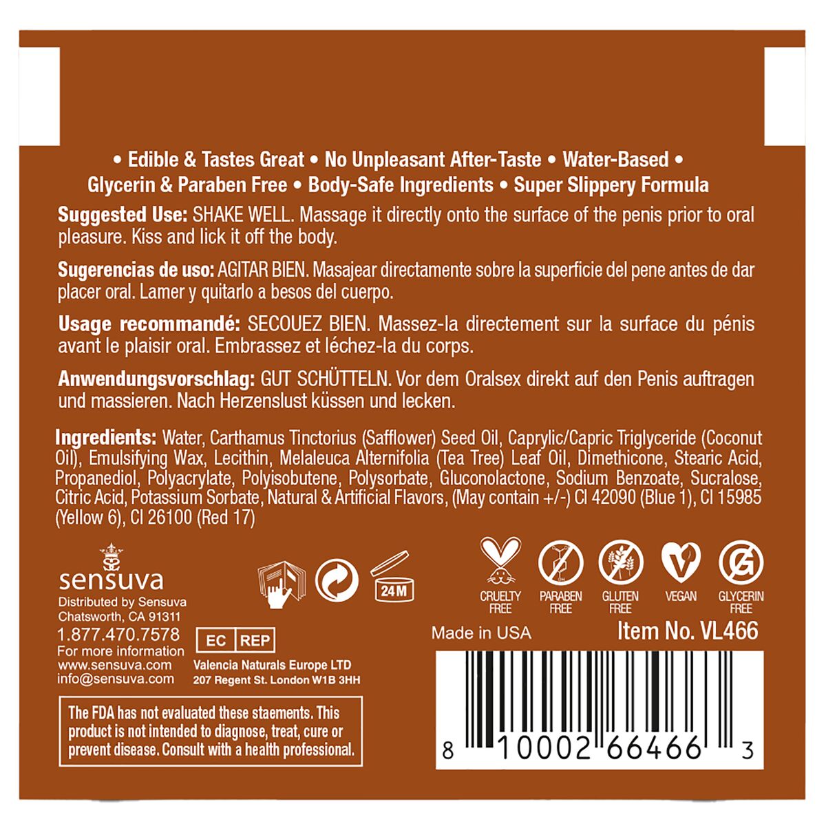Lubrificante Aromatizzato Sensuva Caramello 6 ml