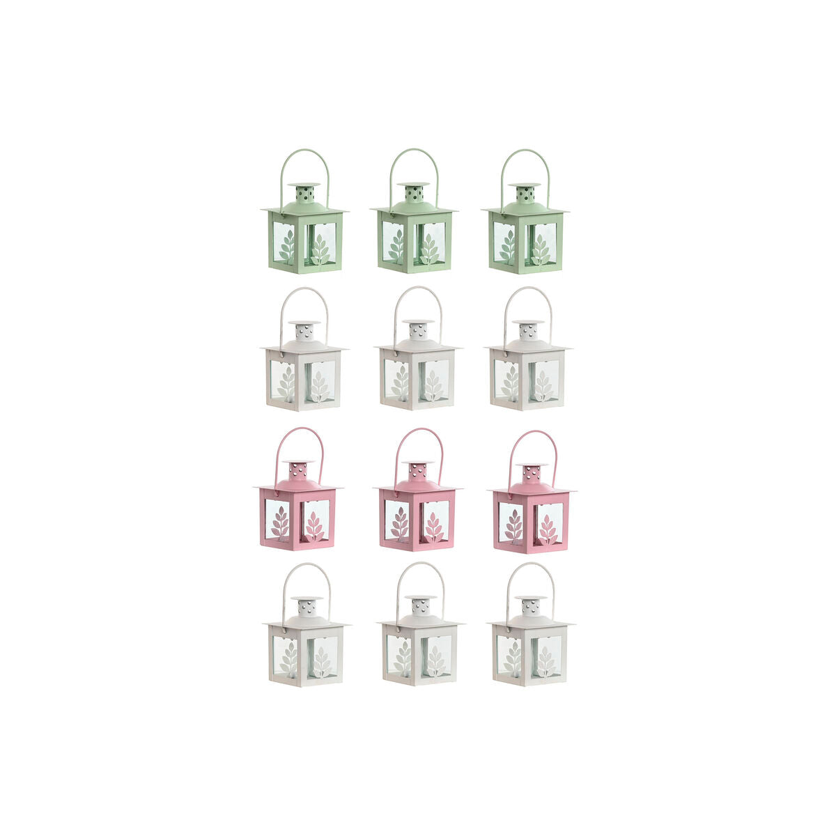 Set di lanterne Home ESPRIT Bianco Verde Rosa Cristallo Ferro Shabby Chic 7 x 7 x 10 cm (3 Pezzi) (4 Unità)